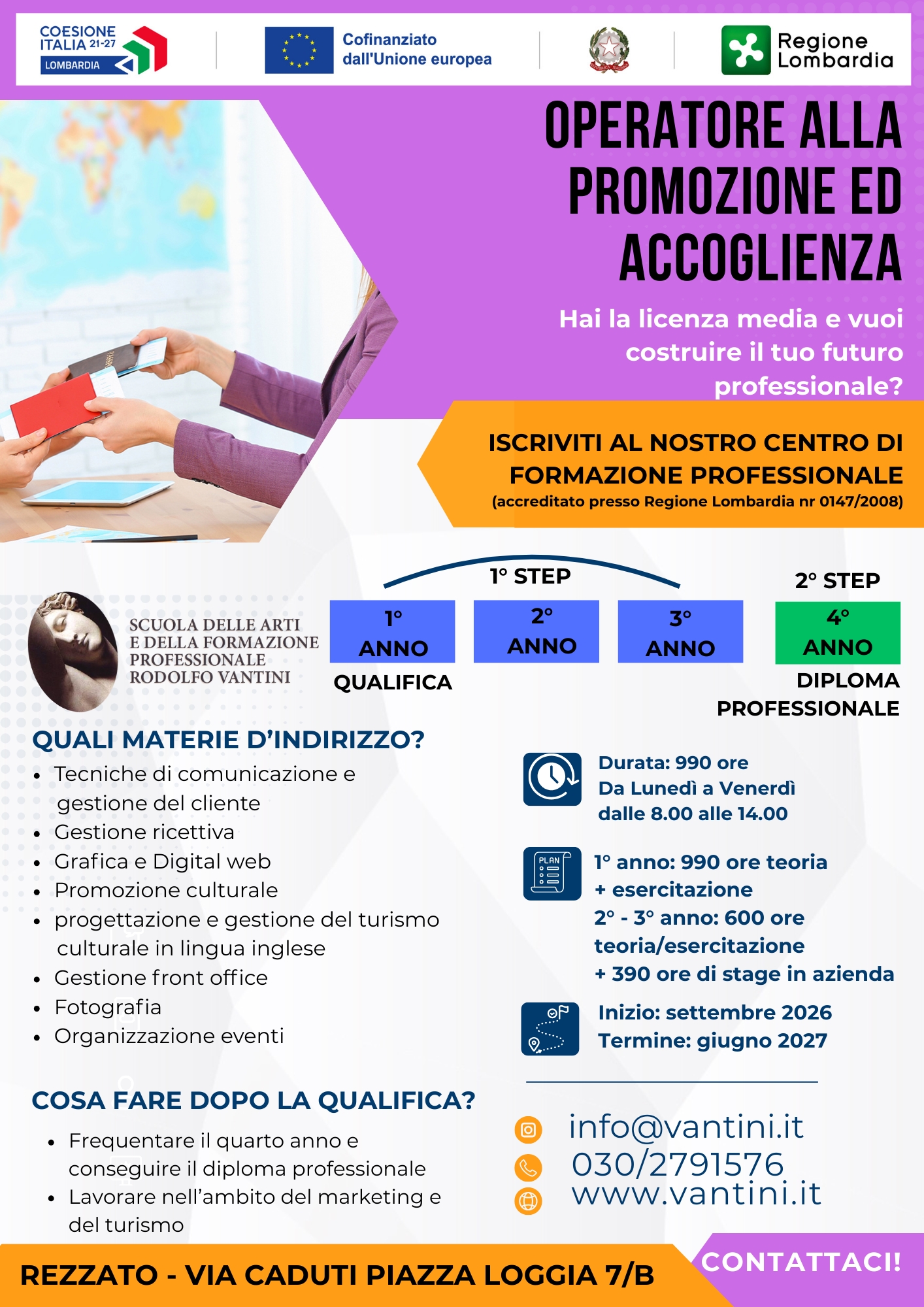 Fino al 14 febbraio 2026, le ragazze e i ragazzi di terza media possono iscriversi ai corsi triennali di qualifica per: